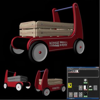 The next section covers the basics of UV Mapping on a children’s red wagon. First, I set up initial shaders, reflecting their correct colors, and assigning them to the correct parts of the wagon. Next, was to figure out the wheels since they are just one object with two colors and two physical textures to replicate, which was solved using a Ramp shader coupled with a Layered shader and a Bump map connected to the right node to complete the effect.